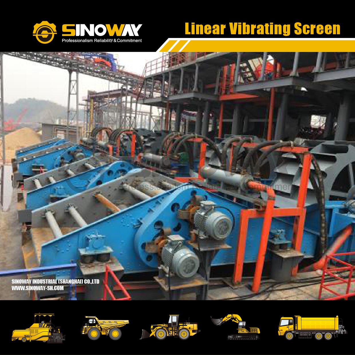 Linear vibrating screen namely circular vibrating screen uses vibrating motor excitation as the source of vibration power, so that material is thrown up on the screen, while moving forward in a straight line. Material evenly enters the inlet and outlet of the screen from the feeder. Through multi-layer screen, a number of sieves with different sieves are produced and discharged from their respective outlets. The utility model has the advantages of low energy consumption, high output, simple structure, easy maintenance, fully enclosed structure, no dust overflow and automatic discharge, and is more suitable for pipeline operation.